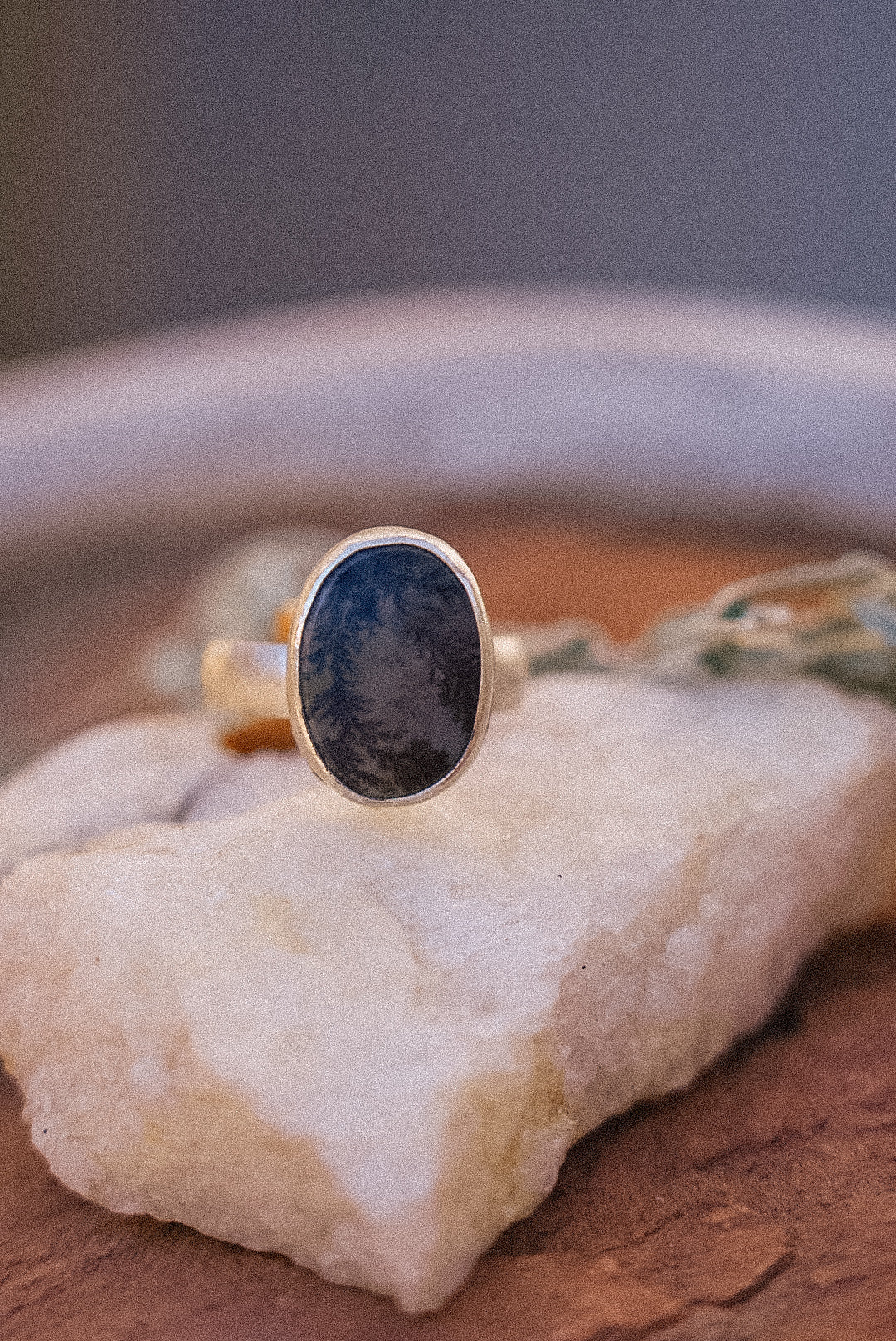 Handcrafted Dendritic Opal Sterling Silver Ring
