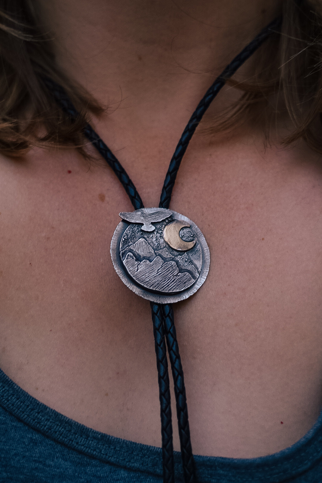 Handcrafted Midnight in the Wasatch Mountains Braided Bolo Tie