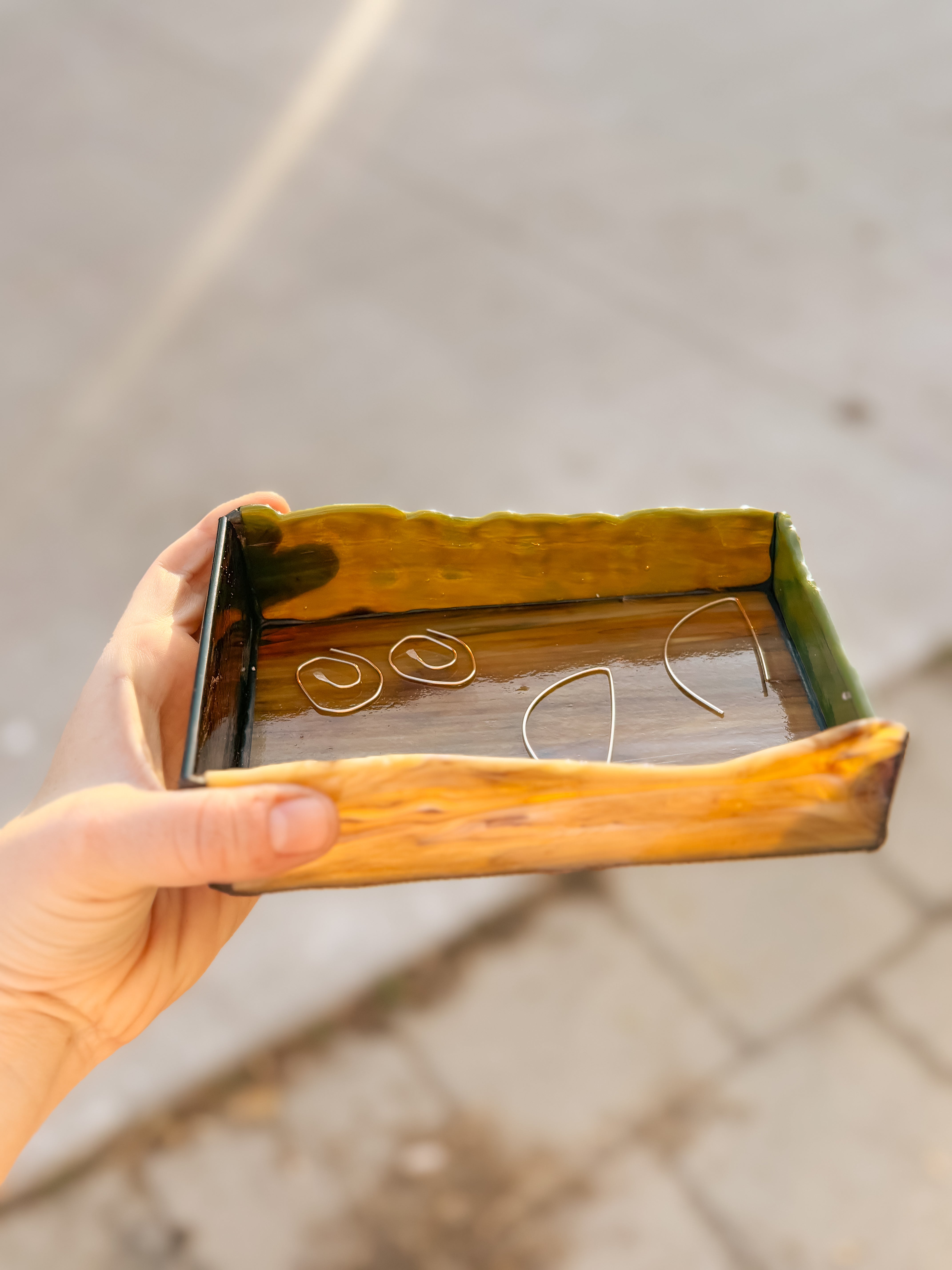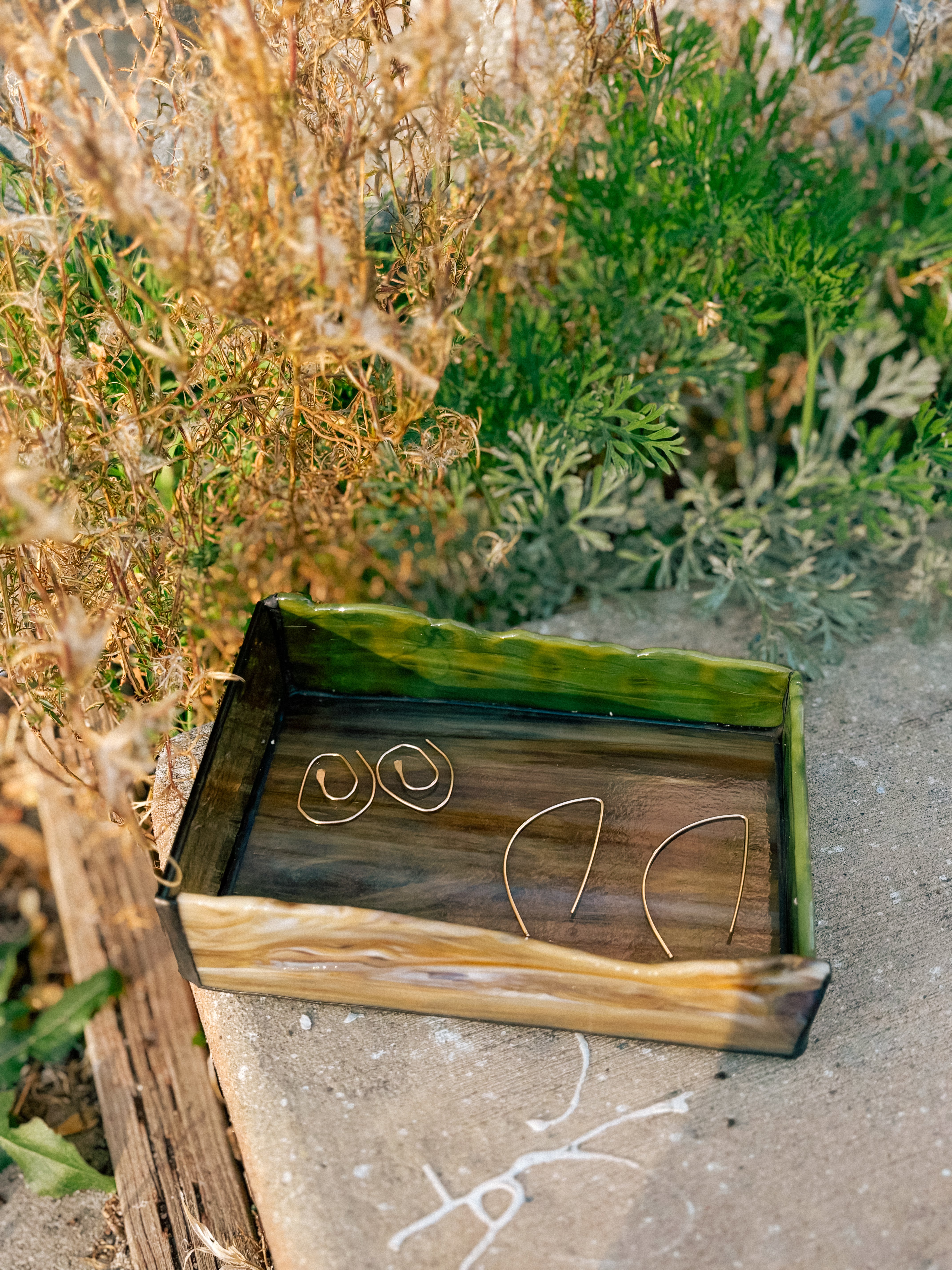 About the Tray: This handmade stained glass jewelry tray is crafted using traditional techniques, with each piece of glass carefully cut and soldered by hand. Earth-toned colors and rolled glass edges give the tray an organic, one-of-a-kind feel, celebrating the beauty of handmade design. Subtle variations in the glass ensure that no two trays are exactly alike, making each piece truly unique and gift-worthy.