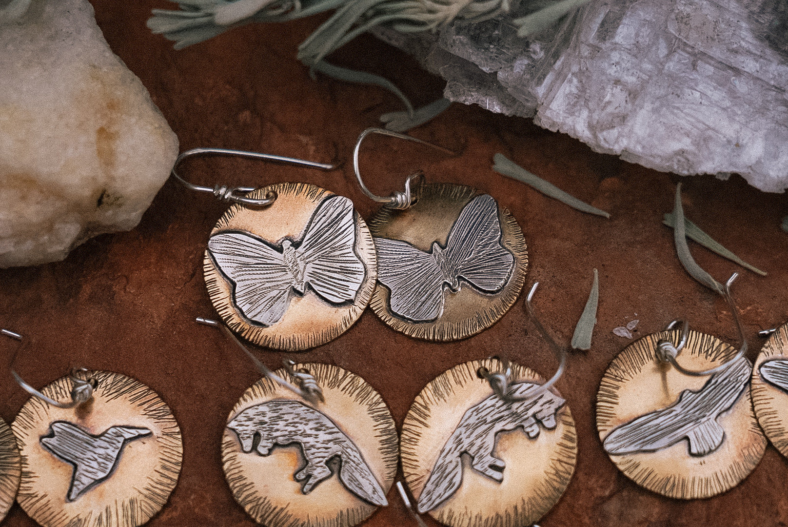 Handcrafted Sterling Silver and Brass Critter Earrings