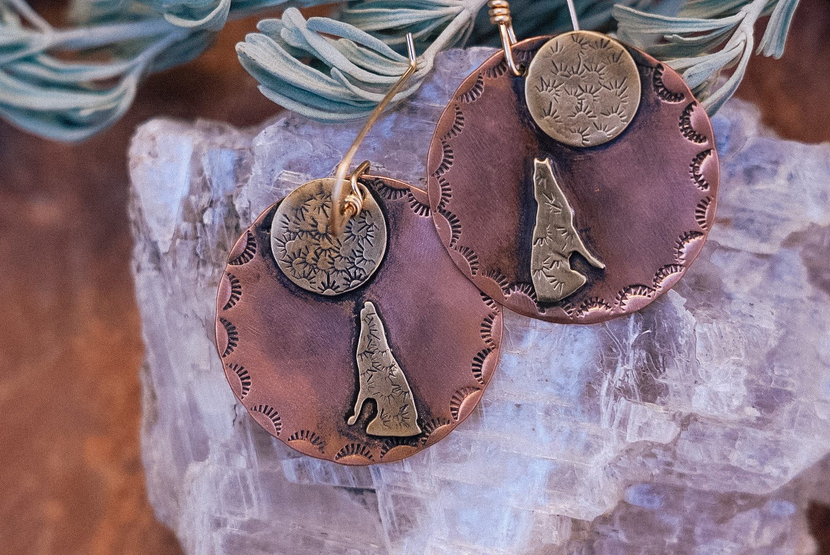 - Materials: Copper and Brass with 14k goldfilled ear wire